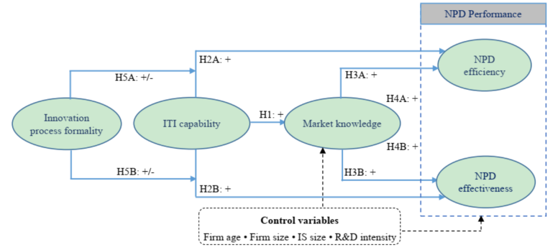 尽管开始有少量研究考察了ITI能力对NPD绩效的影响,但结果不一。例如,有些发现ITI能力与NPD绩效之间存在正相关关系(例如,Marion等人,2015年),有些则没有(例如,Bhatt & Emdad,2010年),还有一些文献发现二者间不存在直接关系(例如,Ashrafi & Ravasan, 2018年)。最近的研究指出,对这种结论不一致现象的调和需要探索ITI能力-NPD 关系间的情境和过程因素,以便从更微观的视角揭示ITI能力'是否'和'如何'提高新产品开发的绩效。