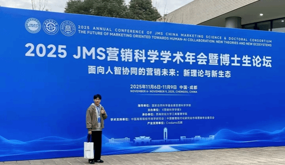 2025年11月7日至9日,2025 JMS 营销科学学术年会暨博士生论坛在西南财经大学成功举办。本届年会在国家自然科学基金委管理科学学部的指导下,由《营销科学学报》主办、西南财经大学工商管理学院承办。本届年会以“面向人智协同的营销未来:新理论与新生态”为主题,由开幕式、大会主旨演讲、博士生论坛、特色论坛“人工智能时代的营销理论创新研讨论坛”、特色论坛“AI生产力重构营销新范式研讨论坛”、平行分论坛、企业家论坛、教学论坛、闭幕式等九个部分组成。来自全国各地高校的500余名参会者参与本次学术盛会。上海应用技术大学消费者行为研究中心研究生张天鹏参加了会议。