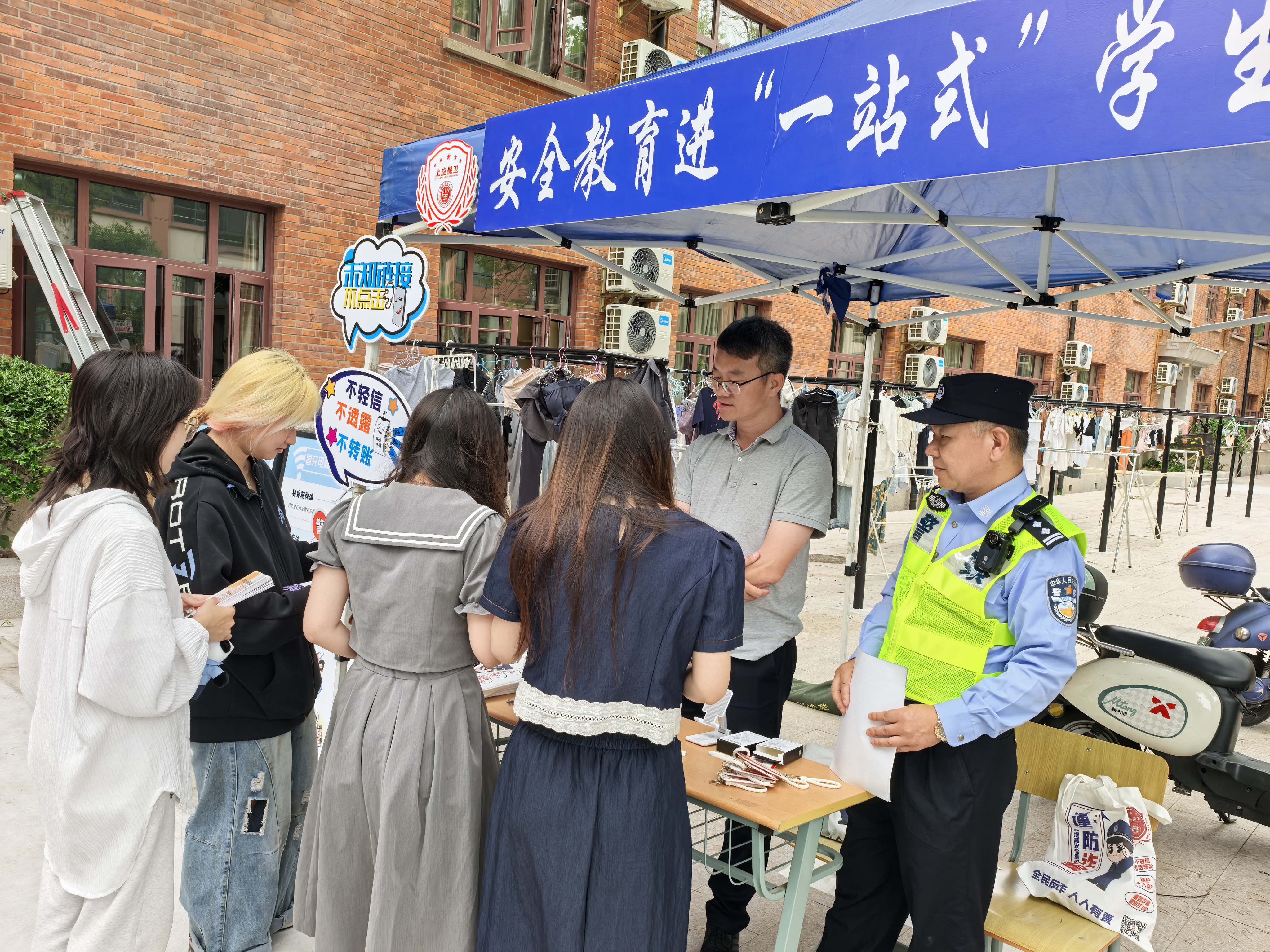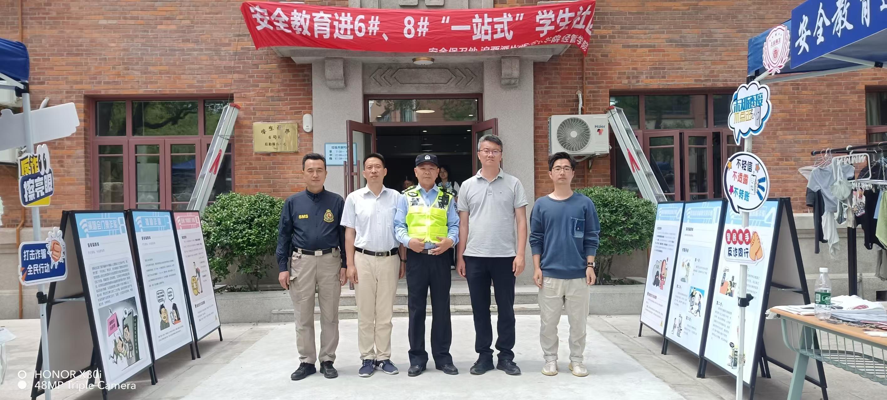 为提高大学生安全防范意识,共建平安、稳定、和谐的校园环境,5月28日,安全保卫处联合沪西高校派出所、艺术学院、经管学院开展安全教育进徐汇校区6#、8#“一站式”学生社区宣传活动。沪西高校派出所副所长宣伯杰,校安全保卫处副处长卫聚金,艺术学院副书记、副院长李岚,6#、8#“一站式”学生社区、继教学院以及泰尔弗国际商学院部分师生参加。