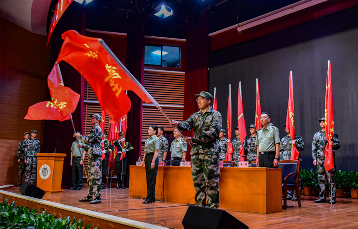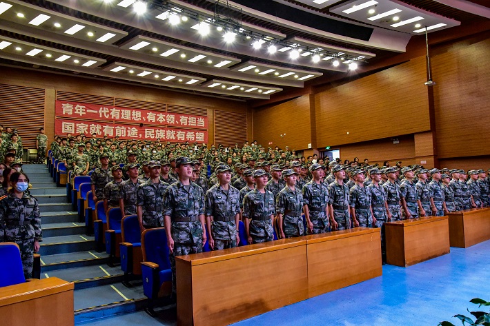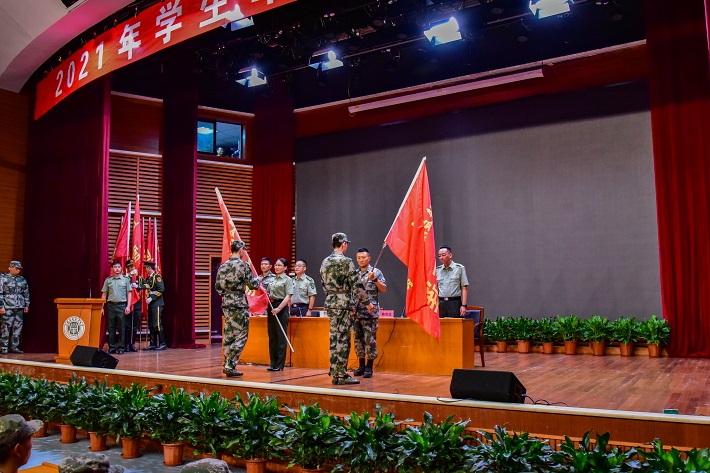 王瑛代表学校向全体新生表示热烈祝贺和欢迎,向承担我校军训任务的全体官兵、为军训辛勤工作的老师们和参与军训工作的退伍同学们表示感谢。王瑛指出,今年,中国共产党迎来了100周年华诞,在这个伟大荣耀的历史性时刻,军训对于培养同学们爱党爱国情怀、增强集体荣誉感、磨炼意志品质具有十分重要的意义,同学们要勇敢面对各种考验,为未来四年的拼搏打下坚实的精神基础。王瑛向全体参训学生提出三点希望与要求:第一,心怀国之大者,厚植爱国爱党情怀,把个人理想自觉融入到国家发展伟业中,在实现中华民族伟大复兴的新征程上兑现“强国有我,请党放心”的青春誓言;第二,增强忧患意识,勇担科技强国重任,以积极和坚定的姿态沉稳应对各种忧患与危机,在革故鼎新的实践探索中砥砺奋进;第三,不惧前路坎坷,磨砺高尚坚韧品格,立大志、明大德、成大才、担大任,用坚持与汗水凝结出绚烂的青春梦想。